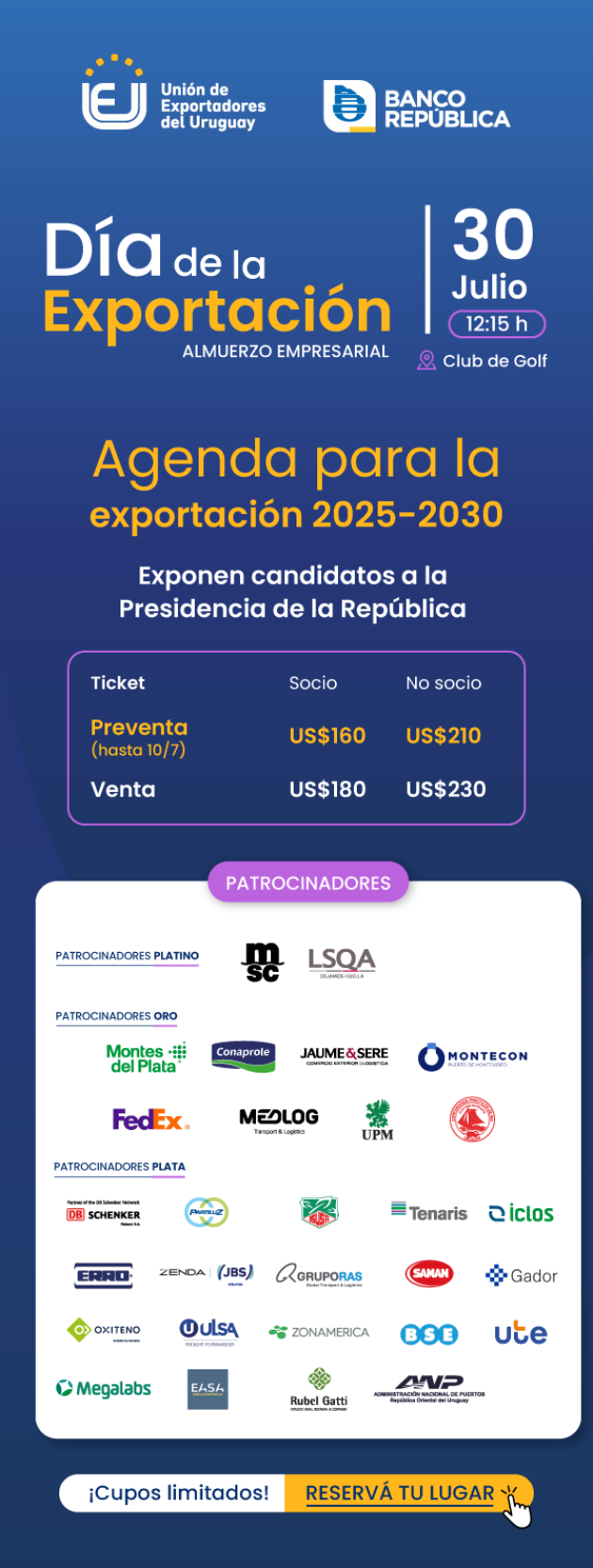 ¡Acompañanos en el Día de la Exportación 2024! Ya podés reservar tu lugar contactándote a al mail: eventos@uniondeexportadores.com (precios bonificados hasta el 10 de julio).