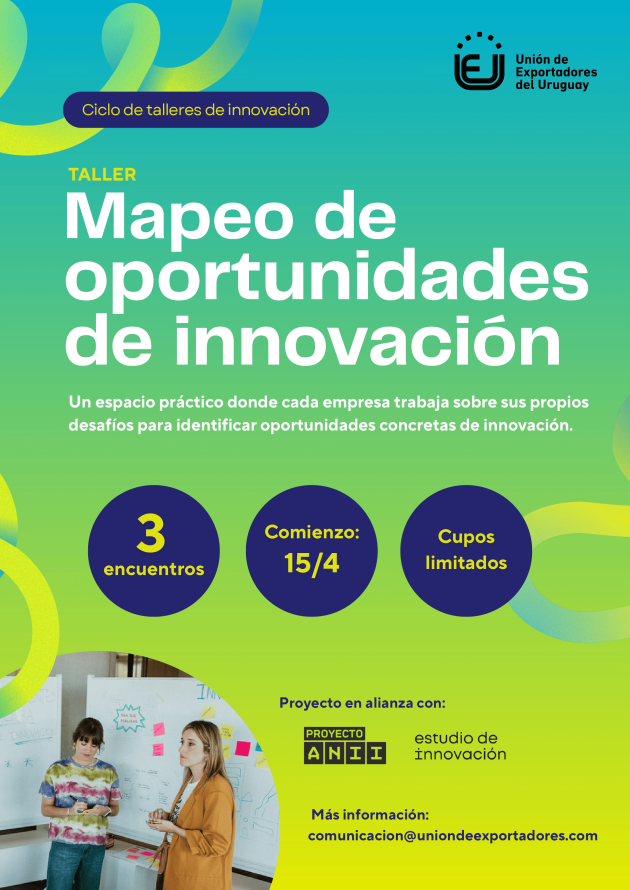 El taller Mapeo de Oportunidades de Innovación, es un espacio donde participarán distintas empresas del ecosistema exportador, y donde cada una trabajará sobre un desafío propio, aplicando herramientas para detectar oportunidades y empezar a transformarlas en iniciativas concretas.