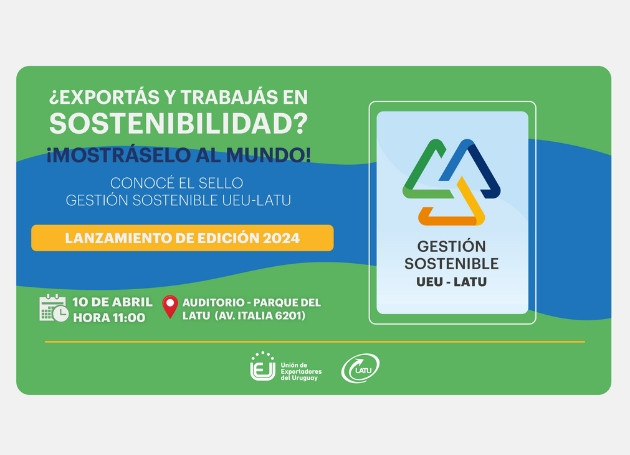 El próximo miércoles 10 de abril, realizaremos junto al LATU el lanzamiento de la edición 2024 del sello Gestión Sostenible UEU-LATU, una herramienta que tiene por fin impulsar la sostenibilidad en las empresas exportadoras y mostrar sus avances en aspectos Ambientales, Sociales y de Gobernanza (ASG).