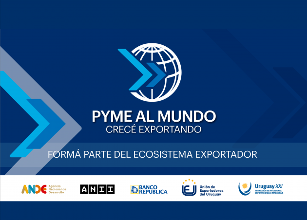 PYME AL MUNDO es una iniciativa de la Unión de Exportadores del Uruguay (UEU), la Agencia Nacional de Desarrollo (ANDE), la Agencia Nacional de Investigación e Innovación (ANII), el Banco República (BROU y Uruguay XXI, a través de la cual se invita a pymes con potencial exportador o iniciando su exportación a participar de un ciclo para impulsar su internacionalización.